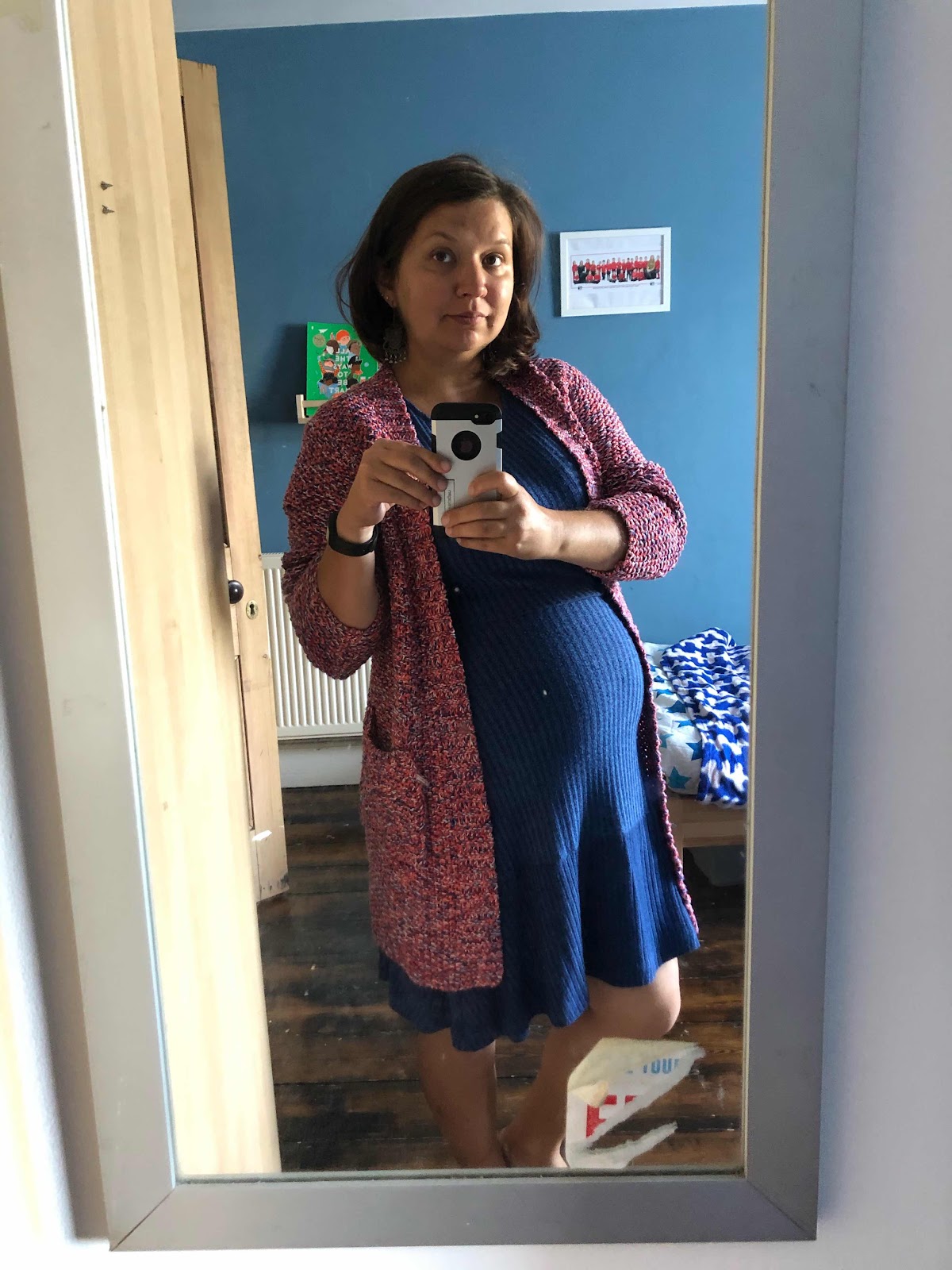 I kept most of my maternity clothes from when I was pregnant with Edgar, like that strippy dress. Which is actually not maternity but just fits nicely over the bump. And some of my not bump clothes just stretched, like that blue dress or embroidered shirt. I did buy a preloved bundle of maternity jeans and shorted them and wore and wore them. I still do as my regular stuff is till up in the attic. So all and all I did buy some pants, well bump was very big and my regular undies were so uncomfortable... also 2 pairs of breastfeeding pjs, and a coat. The coat I am still wearing as it “grows” with the bump and goes to regular size. I did think of giving the coat to my mum after the baby but I think I will be keeping this one. It’s like a duvet style and so warm! Also I borrowed a log of hubby’s pjs and actually currently still wear these around the house.